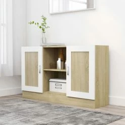 New π₯ VidaXL Sideboard White and Sonoma Oak 47.2″x12″x27.6″ Engineered Wood π₯°