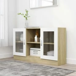 Promo π VidaXL Vitrine Cabinet White and Sonoma Oak 47.2″x12″x27.6″ Engineered Wood π
