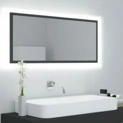 Cheapest π VidaXL LED Bathroom Mirror Gray 35.4″x3.3″x14.6″ Engineered Wood π