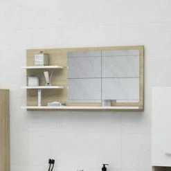 Coupon π VidaXL Bathroom Mirror White and Sonoma Oak 35.4″x4.1″x17.7″ Engineered Wood π