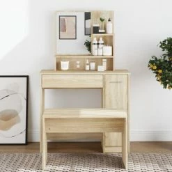Promo π VidaXL π Dressing Table with Mirror Sonoma Oak 34.1″x13.8″x53.5″ β€οΈ