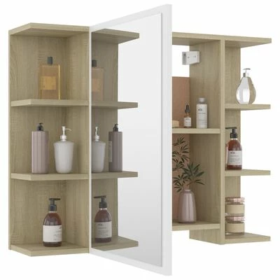 The wall mirrored cabinet is made of engineered wood and acrylic, making it durable and stable. The cabinet features 1 door and totally 8 compartments. The 6 outside compartments provide enough storage space while 2 inside compartments offer additional space. They can easily accommodate your essential toiletries and bath items such as soaps, shampoo, toothpaste, etc.