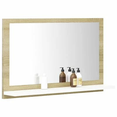 Outlet βœ”οΈ VidaXL Bathroom Mirror White and Sonoma Oak 23.6″x4.1″x14.6″ Engineered Wood 🀩