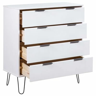This side cabinet is made of solid pine wood, making it highly stable and durable. The metal legs also add to its sturdiness. The sturdy top is ideal for placing for your various items, making your room tidy and clean. With 4 large drawers, this sideboard provides ample storage room to keep your books, magazines, and other things neatly organized.