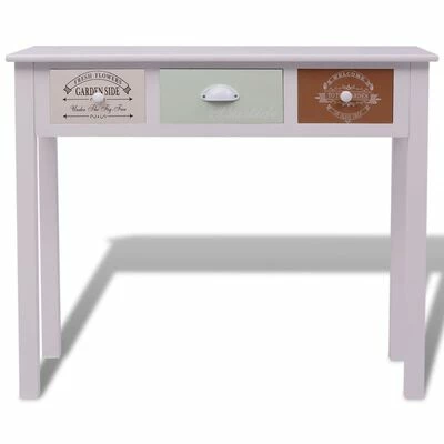 This antique-style console table has 3 smoothly running drawers, which provide ample storage space for your personal belongings and will help keep your room tidy. The middle drawer is painted in an elegant light green color. The 2 side drawers with vintage country-style prints add to the rural charm of the hall cabinet. The side drawers can be exchanged.