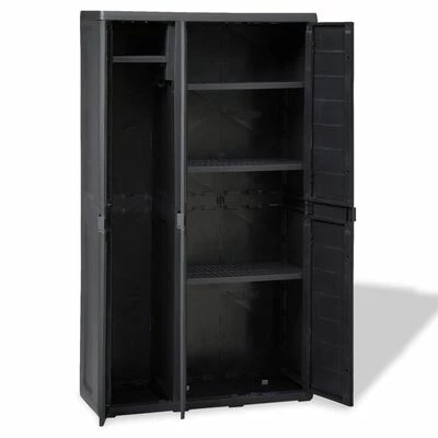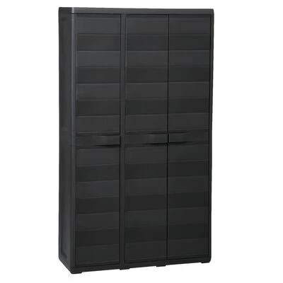 This TΓV-GS certified cabinet is made of sturdy, durable polypropylene (PP). The spacious storage cabinet has ventilated shelves which can be adjusted to accommodate items of different sizes. The garden cabinet can be locked with a padlock for added safety (the lock is not included).