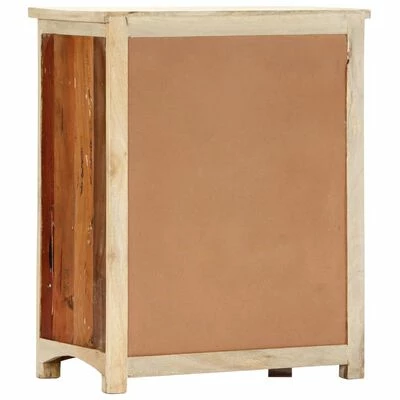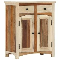 This sideboard is made of solid mango wood and reclaimed wood that has been sourced from joists, floors and support beams from old buildings being demolished, and it can consist of different types of wood like pine, teak, beech, oak, cedar, mango wood, acacia, etc. This means the reclaimed wood retains the characteristics of these different types of wood. Reclaimed wood is already aged, weathered and dried, so it doesn’t shrink or bend. Every step of the process is carried out with the greatest care, be it polishing or lacquering. The exquisite craftsmanship and the graceful wood grains make every piece of furniture distinctive and slightly different from the next. Additionally, this side cabinet is distinguished by 2 doors and 2 drawers, offering an ideal solution for keeping your smaller items organized and within reach. The side cabinet is easy to assemble.