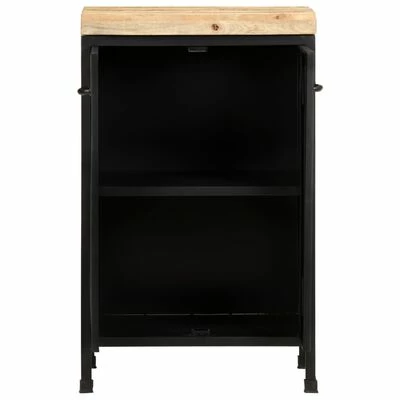 The side cabinet is made of rough mango wood, a tropical hardwood with the strength to bear the weight. It also stands the wear and tear of time, making it stable and durable. The powder-coated iron frame also adds extra stability. This cupboard features 2 doors, providing ample storage space. Additionally, the sturdy wooden top is ideal for displaying decorative objects such as photo frames, potted plants, vases, etc.