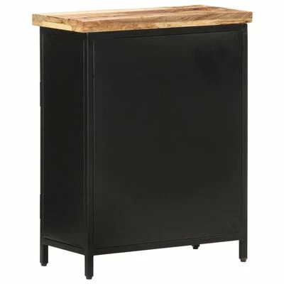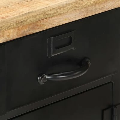 The sideboard is made of solid rough mango wood, a tropical hardwood with the strength to bear the weight. It also stands the wear and tear of time, making it stable and durable. The black powder-coated iron base combined with steel provides extra stability for this item. The craftsmanship and the beautiful wood grains make every piece of furniture unique and slightly different from the next. This side cabinet also features 2 drawers and 2 doors, providing ample storage space for keeping your essential items organized and within reach.