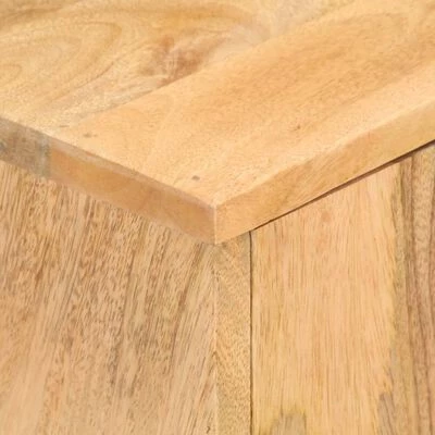 The side cabinet is made of solid mango wood with natural timber fine finish, a tropical hardwood with the strength to bear the weight. It also stands the wear and tear of time, making it stable and durable. The craftsmanship and the beautiful wood grains make every piece of furniture unique and slightly different from the next. It features two doors and provides ample storage space. Additionally, the sturdy top is ideal for displaying decorative objects such as photo frames, potted plants, vases, etc.