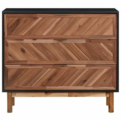 The wooden sideboard is expertly crafted from solid acacia wood and MDF, making it very sturdy and durable. The cabinet features 3 drawers, providing ample storage space for books, multimedia appliances and other essentials. The sideboard top is ideal for displaying decorative objects, photo frames, or potted plants. The gold aluminum handles also make the storage cabinet stylish.
