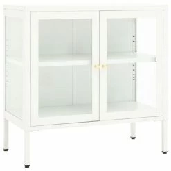 Best Pirce 🧨 VidaXL Sideboard White 27.6″x13.8″x27.6″ Steel and Glass 🧨