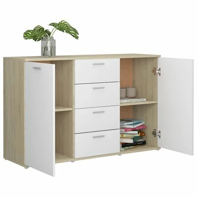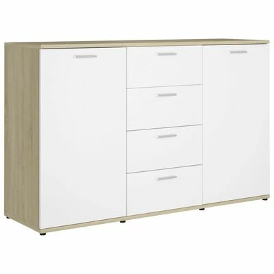 With 2 doors and 4 drawers, the sideboard provides ample storage space for books, multimedia appliances and other items. The sturdy tabletop is ideal for displaying decorative objects, photo frames, or potted plants. Thanks to the premium engineered wood material, this sideboard is stable and built to last. Additionally, the drawer cabinet is easy to clean with a damp cloth.