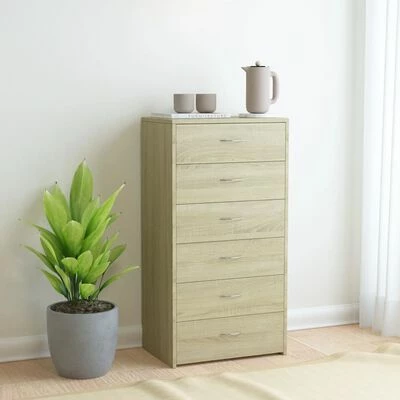 Made of quality engineered wood, this sideboard is exceedingly durable and sturdy. The sideboard offers large storage space with 6 drawers. You can keep your books, multimedia appliances and other personal belongings organized and within reach. Additionally, the sturdy tabletop is ideal for displaying decorative objects, photo frames or potted plants.