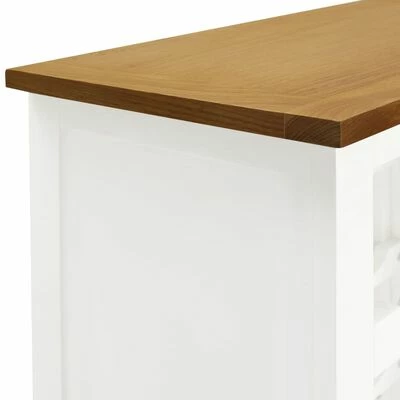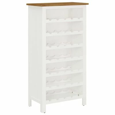 This bottle holder has a top made of solid oak and MDF with oak veneer, featuring a solid acacia wood body. The seven open wine racks provide ample space for wine lovers to store wines well organized.