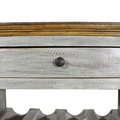 The wine rack is made of solid reclaimed wood, which contains the characteristics of different woods like mahogany, teak, hard wood, mango wood, acacia, etc. You may find cavities left by nails, screws, or bolts along with other imperfections, underlining its authenticity. These imperfections disclose a history of the past and are never intentionally made. The wood originates from naturally fallen trees, wooden boats, wooden houses, etc. Every piece of this furniture is unique, and slightly different from the next. Signs of wear and the craftsmanship of this fully-handmade wine cabinet give each piece a unique look and add to its spectacular vintage style.