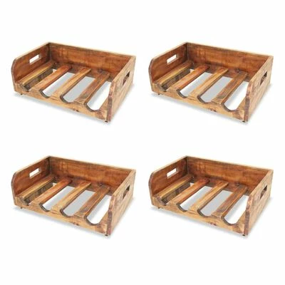 This set of 4 wooden wine racks is perfect for wine aficionados and will add a touch of rustic charm to any interior. Each rack can hold 4 bottles.