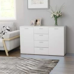 Constructed from high-quality MDF and pinewood with a white paint finish, this sideboard/TV cabinet is highly durable.